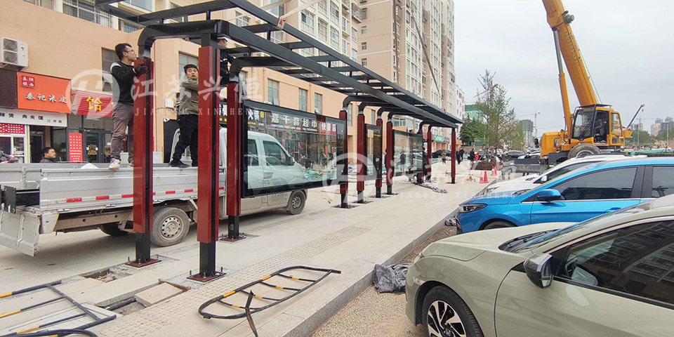 此次我们承接的便是晋城市泽州县的便民候车亭采购项目。据悉此次安装的候车亭立柱为150*150镀锌方管,坚固耐用,柱子红黑搭配,稳重大气,整体经过高温静电喷塑,确保候车亭使用寿命更加长久。顶棚平铺湖蓝色阳光板,透光的同时也起到遮阳的作用。视窗则采用8mm厚黑边丝印钢化玻璃,增加候车亭整体的质感。泽州县环境优美,四面环山、青山绿水,候车亭整体的造型与当地的环境交相辉映。除这些可见的外观造型外,便民候车亭灯箱内部还配备有滚动系统,画面可定时轮播,加上站台上充足的人流,滚动灯箱着实给广告效果加了不少分!下面我们来一起欣赏下晋城便民候车亭安装实景图!