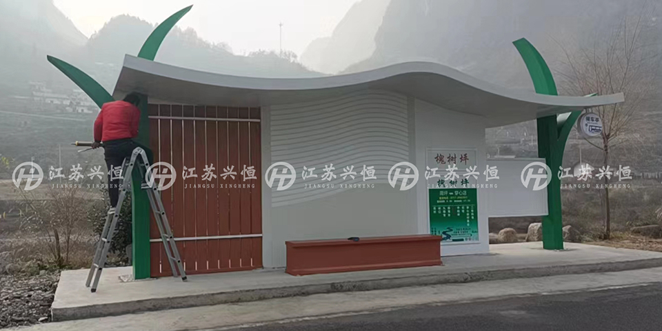 近期来自湖北的客户在我司订购了一批特色款兰草造型候车亭,经过数日的紧张施工,这批候车亭已制作完成并顺利交付。从当地施工方发来的图片可以看到,候车亭已安装完毕,不久将投入使用。