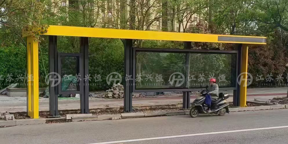 近日由江苏兴恒公交候车亭生产厂家制造的现代特色款候车亭于浙江慈溪亮相。从当地施工方发来的图片可以看到,候车亭安装已接近尾声,不久将投入使用。