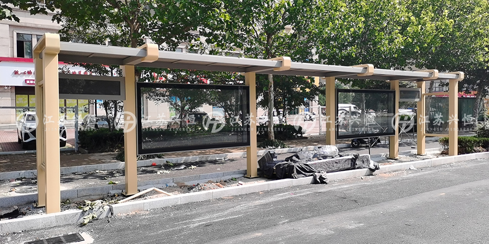 该款候车亭长达13米,表面采用高温静电喷塑技术处理,防腐防磨,经久耐用。候车亭以黄色为主搭配灰色,色调柔和,与周围环境相呼应。在候车亭中间配备一台智能电子站牌,让乘客一眼就能清晰了解公交车的到站时间和线路信息,不再为等车而焦虑和浪费时间,不仅提高了公交出行的效率,还为乘客创造了更舒适便捷的环境。